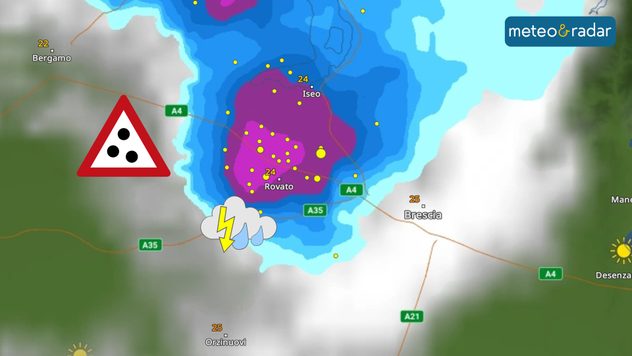 Un intenso sistema temporalesco ha interessato appena dopo l'alba il bresciano portando grandinate rovinose tra Coccaglio e Rovato con interessamento di un lungo tratto dell'A4.