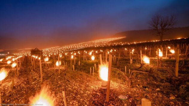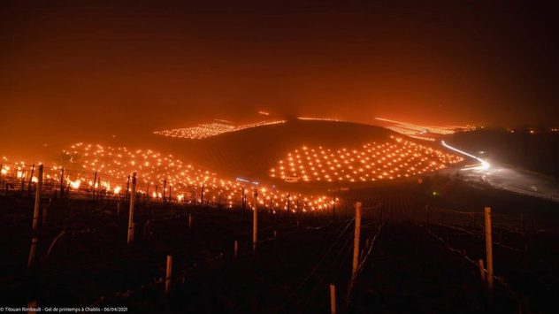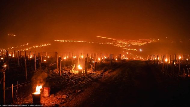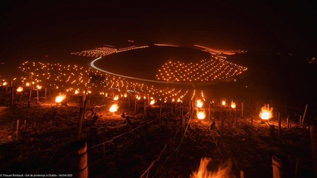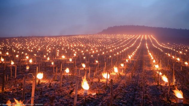Qui sotto vi mostriamo un metodo che è stato molto praticato dai viticoltori per proteggere dal gelo tardivo le piante della vigna. Le immagini risalgono all'aprile 2021 dalla Borgogna, vicino Bordeaux, in Francia.