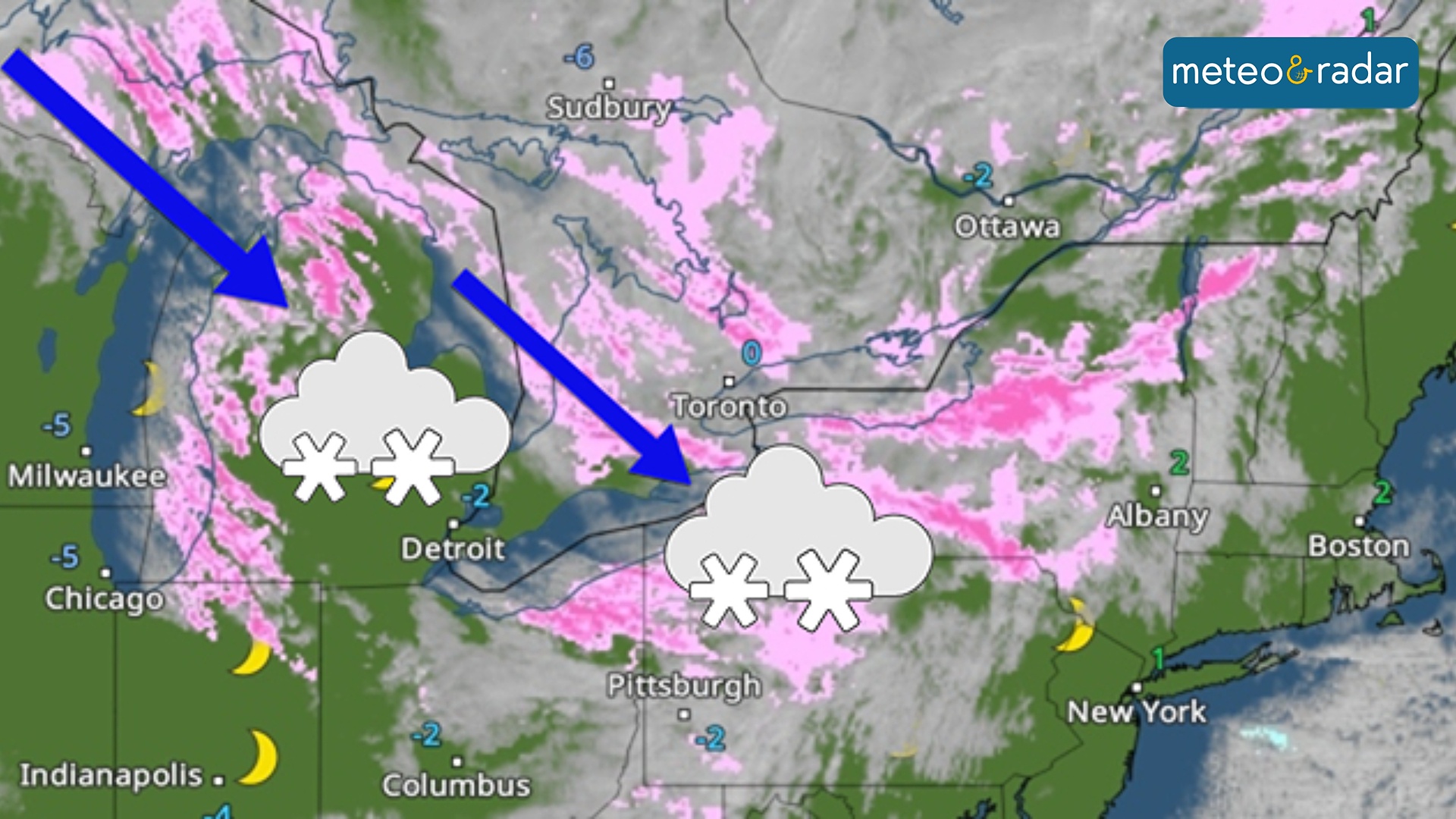 Radar Meteo: le nevicate da snow lake effect sui Grandi Laghi americani.