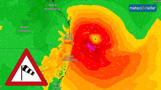 L'area di maggior rischio d'impatto ricade tra la Sunshine Coast e la Gold Coast, dove attualmente è in vigore uno stato di allerta che riguarda anche la città di Brisbane. Oltre 20.000 abitazioni sono a rischio a causa delle mareggiate e delle inondazioni che accompagneranno il transito del sistema perturbato.