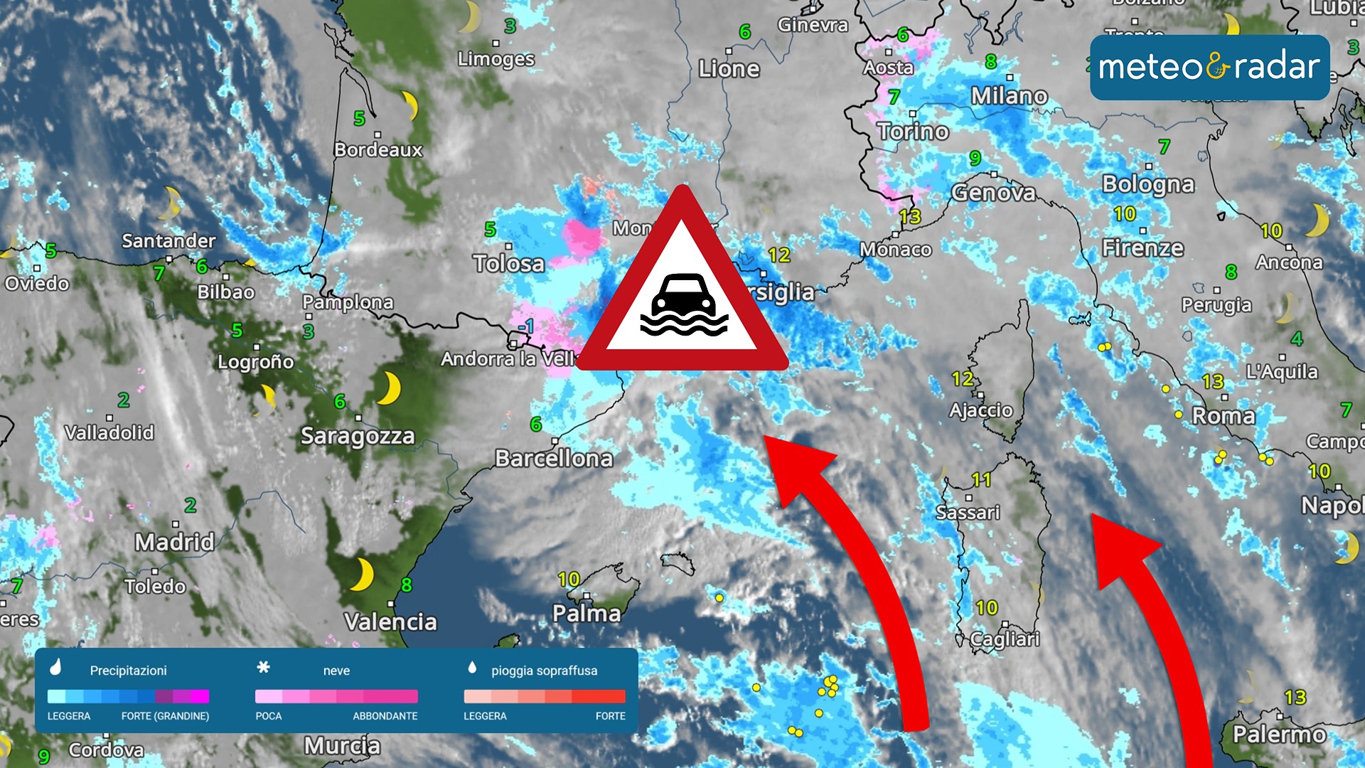 Radar Meteo: i venti di Scirocco hanno trasportato grandi quantità di aria umida nel sud della Francia, dove si sono verificate delle alluvioni.