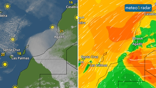 Una violenta tempesta di sabbia ha colpito nelle ultime ore l'Africa nord-occidentale, provocando un forte evento di Calima sulle Isole Canarie. Questa nube di polvere, sollevata da venti che hanno raggiunto velocità fino a 80km/h, ha causato una drastica riduzione della visibilità, causando per alcune ore l'interruzione del traffico aereo.