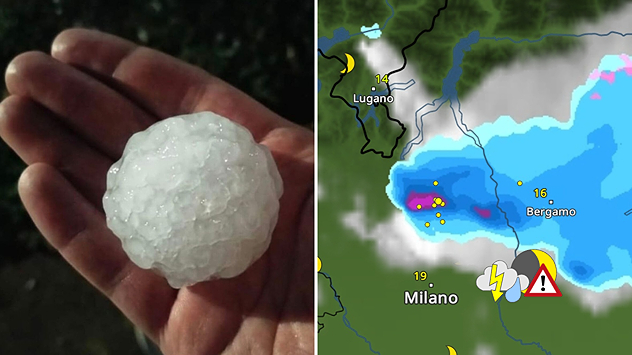 Generalmente in questo periodo dell'anno la grandine dovrebbe avere una dimensione molto più contenuta, grande al massimo come un pisello ma le immagini mostrano un chicco di dimensioni già ragguardevoli ( 4 - 5 cm). In zona i residenti locali hanno segnalato chicchi grandi come palline da golf.