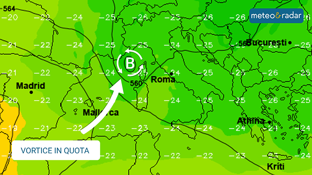 Vortice in piena azione sull'Italia