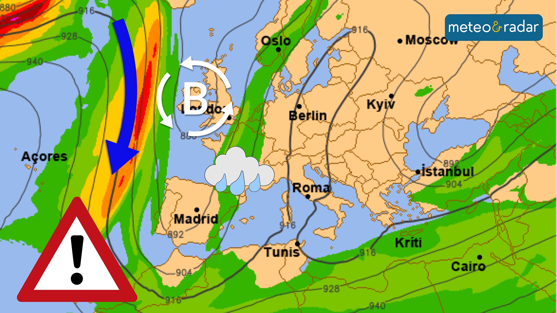 Si preannuncia un'importante fase perturbata sull'Europa occidentale. Le precipitazioni colpiranno in parte anche l'Italia.