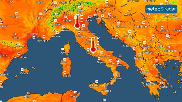 Valori massimi previsti sabato 25, picchi frequenti fino a +26°C.