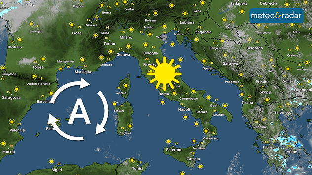 Temperature in netto rialzo grazie al rinforzo dell'alta pressione.