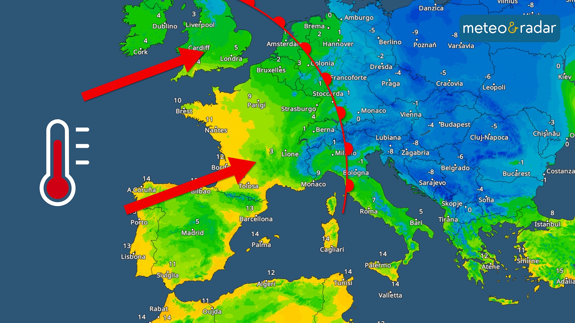 Radar Temperature: aria molto tiepida raggiunge in queste ore l'Europa.