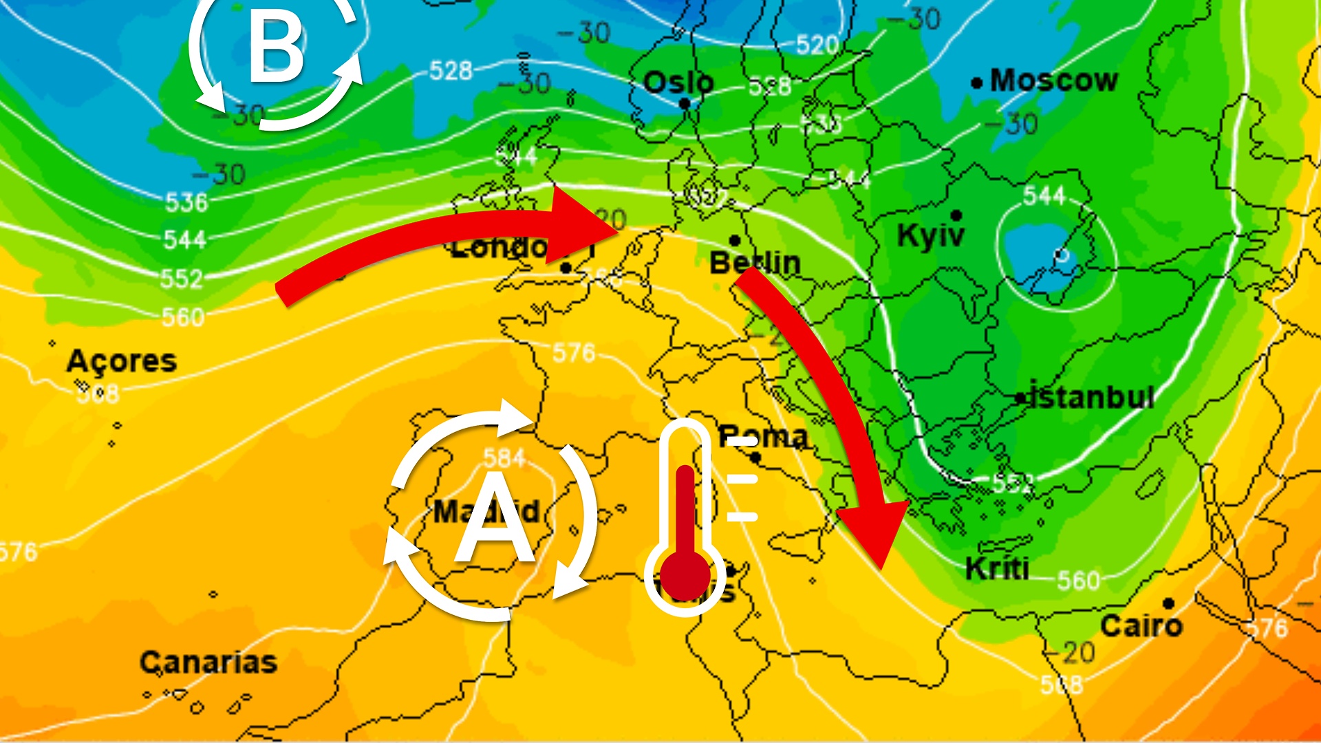 Le condizioni atmosferiche previste sull'Italia nei prossimi giorni saranno condizionate dalla forte attività depressionaria che avrà il proprio centro motore sull'ovest Europa.