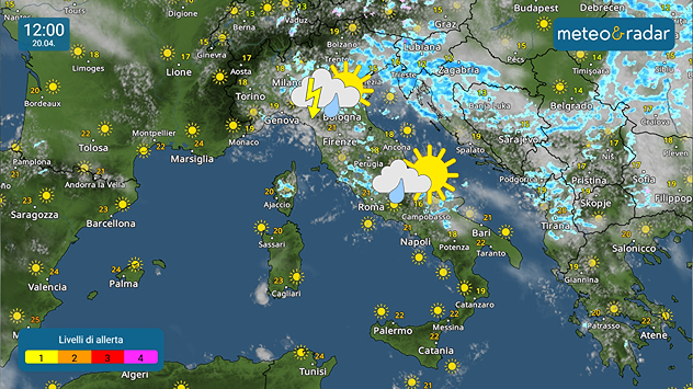 Lunedì 20 nuvole e associate a precipitazioni interesseranno soprattutto le regioni orientali, il Triveneto ed il versante adriatico.