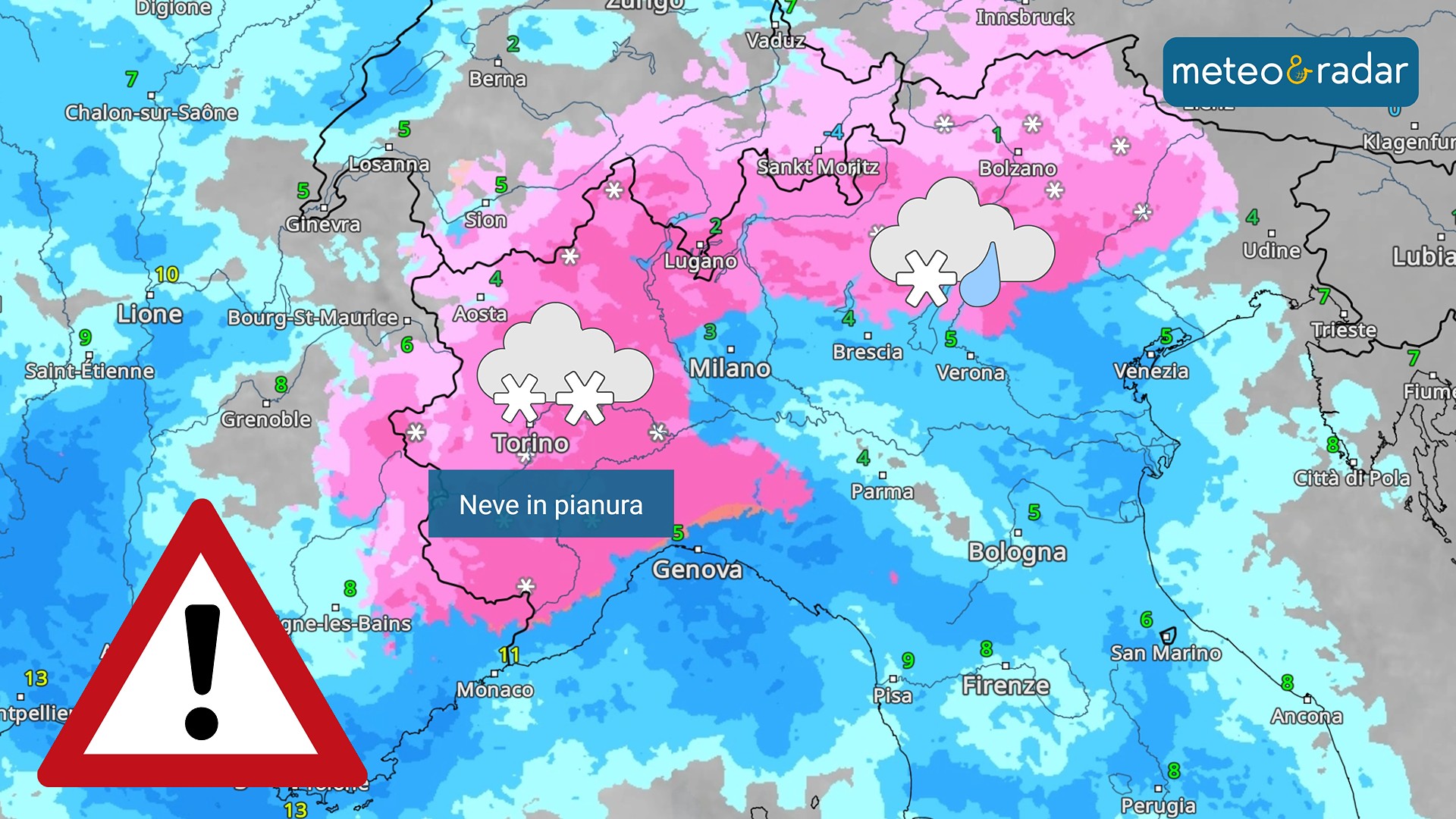 Radar Meteo: nevicate in arrivo al nord-ovest dalla serata di lunedì.