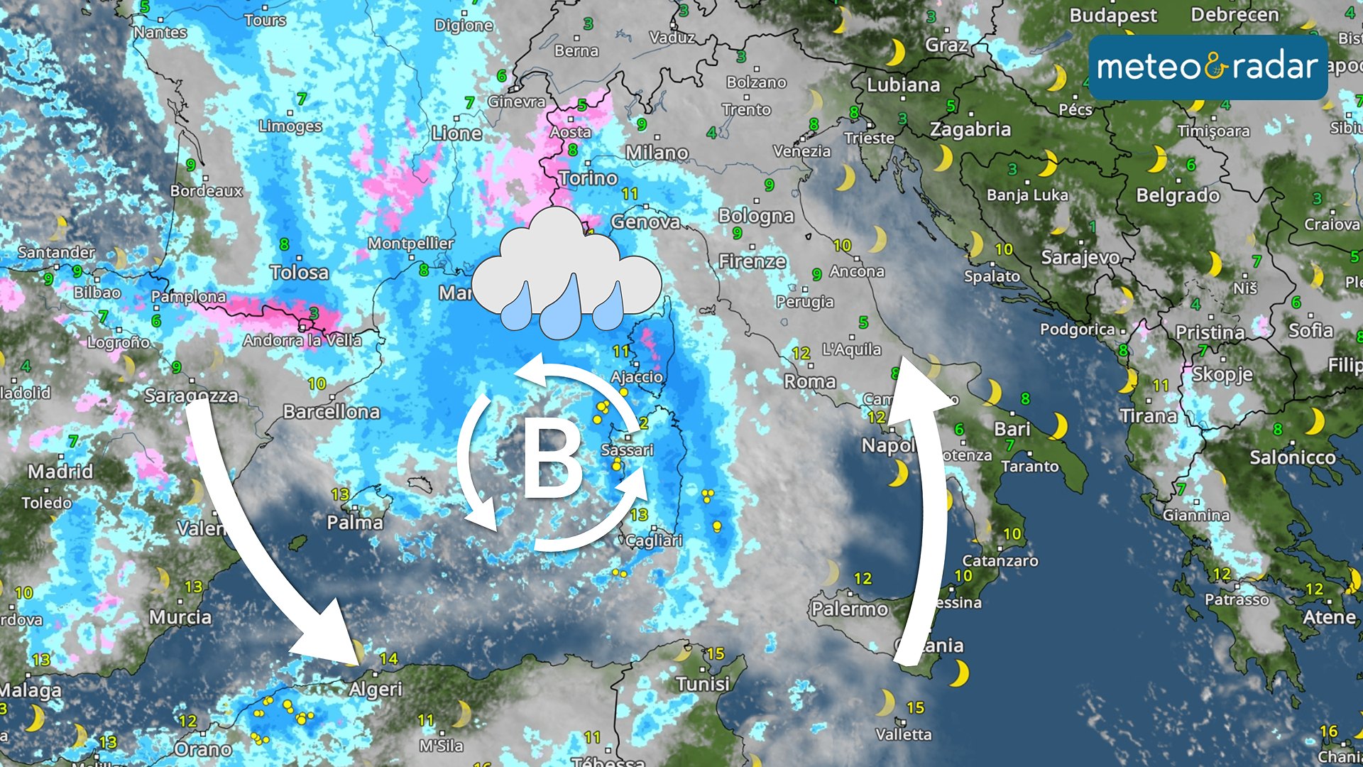 Radar Meteo: la perturbazione in arrivo sull'Italia nel weekend di San Valentino.