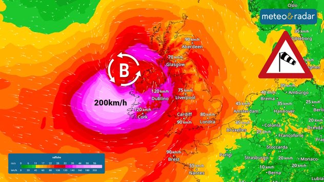 I picchi maggiori di vento si dovrebbero registrare proprio in Irlanda nelle prime ore di venerdì 24 ma anche tra Mare del nord, Scozia e Inghilterra sono attese raffiche fino a 170km/h.