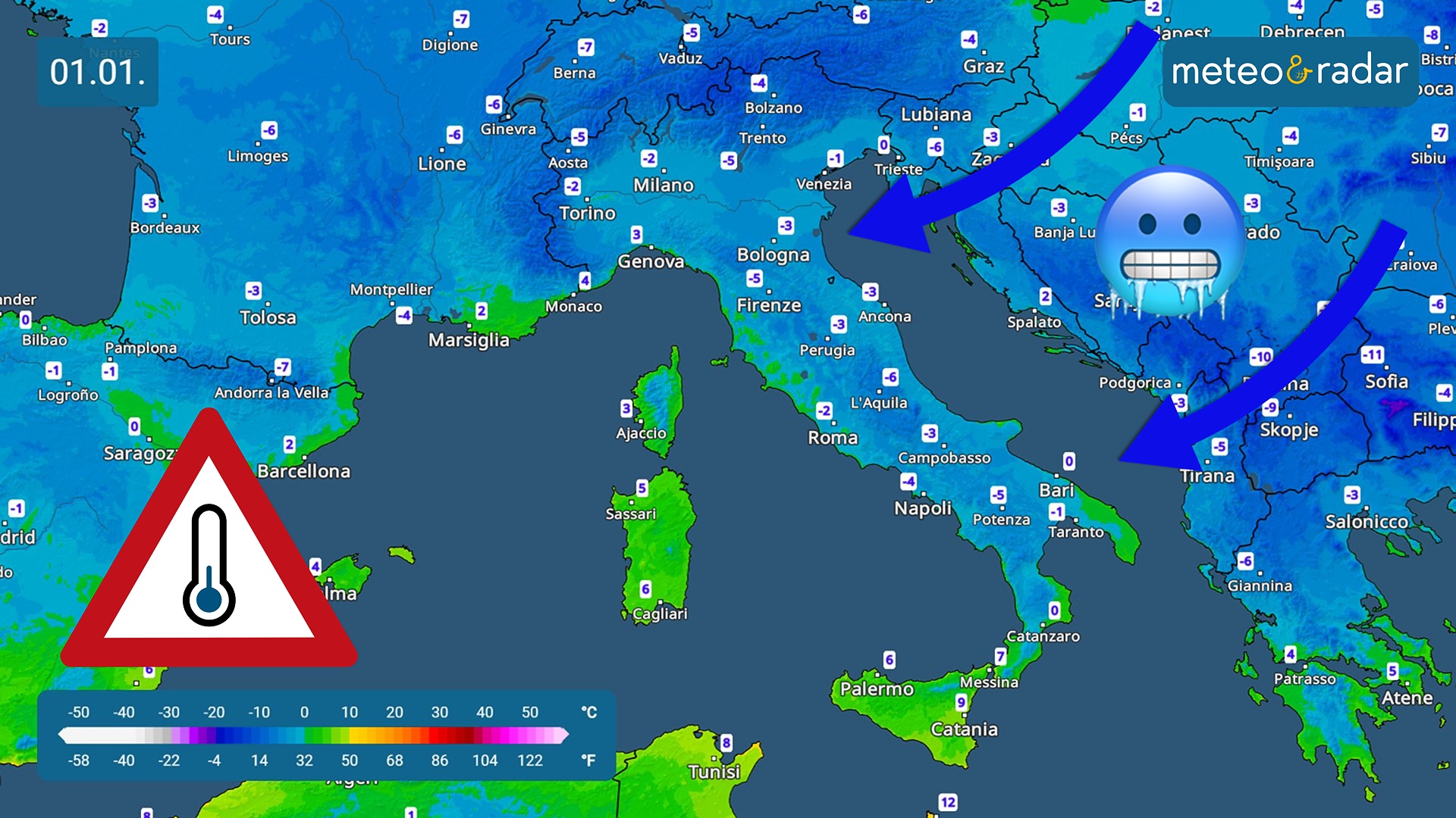 Radar temperature: gennaio 2026 esordirà con una mattinata piuttosto fredda sullo stivale.