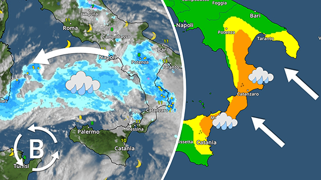 Vortice in piena azione sull'Italia
