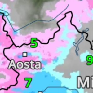 Deboli precipitazioni nevose da questo pomeriggio. Quantità modeste.