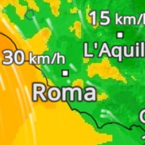 Raffiche di vento fino a 45 km/h