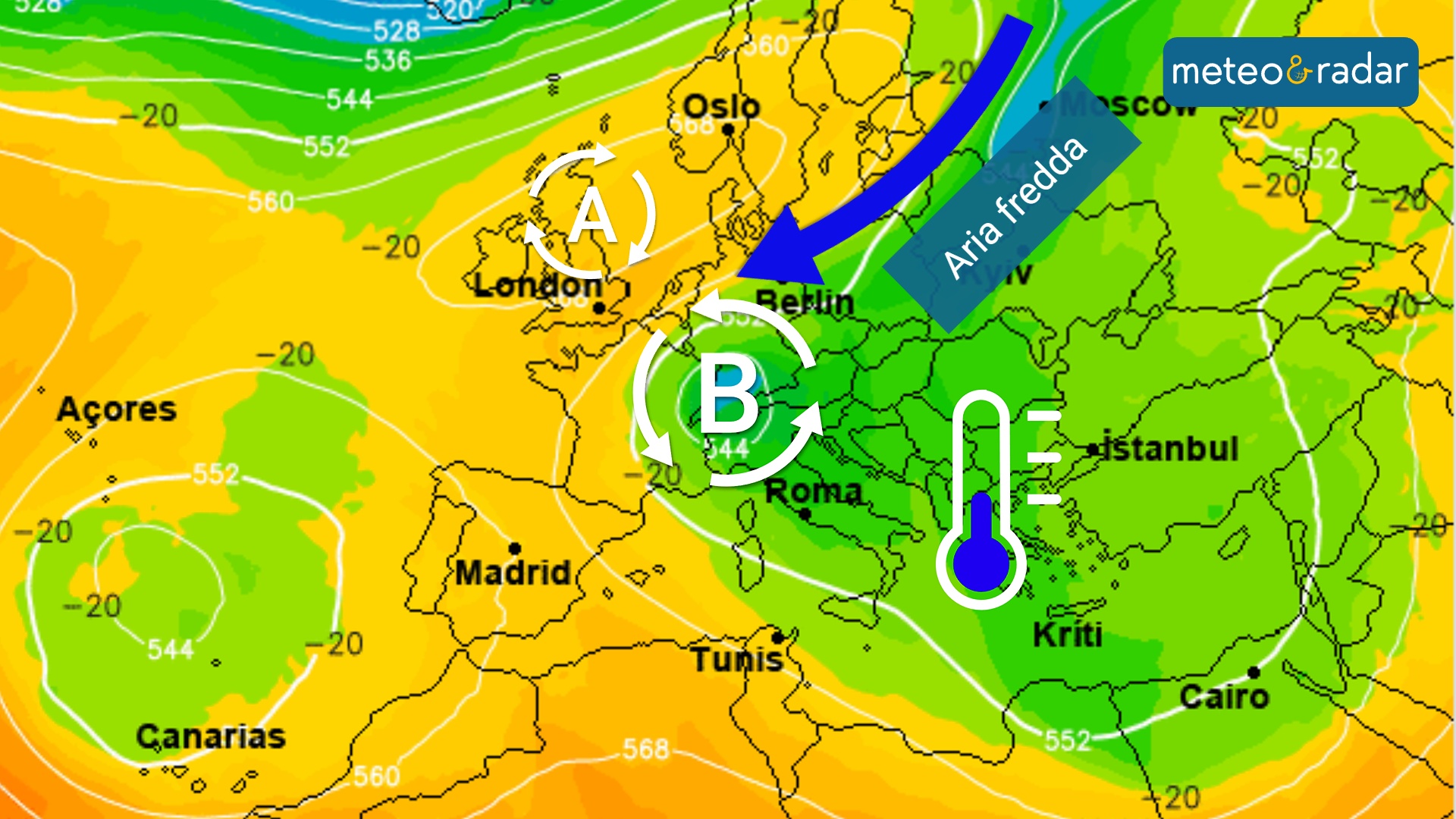 La nuova settimana porterà un rallentamento dei venti occidentali sull'Europa, la pressione atmosferica a nord delle Alpi sarà in rialzo. Lo sviluppo di una figura anticiclonica di blocco aprirà la strada a venti più freddi orientali. Le prime regioni ad accorgersene saranno quelle Balcaniche ma entro mercoledì una prima ventata di aria fredda si farà sentire anche sull'Italia, soprattutto al centro e al sud.